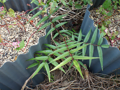 高嶺ルビーを植えている畝と畝の間にカラスザンショウだと思われる幼木が生えてきている。
